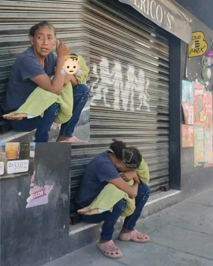Ocurrió en una banqueta cualquiera, frente a una cortina metálica bajada, hostil y gris, manchada por grafitis que nadie se molesta en leer. Ahí, en un escalón de cemento frío, estaba sentada ella. No sabemos su nombre real, pero podríamos llamarla “Esperanza”, o “Rosario”, o cualquier nombre de esas miles de madres que cargan el peso del mundo en la espalda. Su piel, curtida por el sol de quien trabaja a la intemperie o viene de la sierra, contaba historias de fatiga crónica. Llevaba una playera azul deslavada, unos jeans y unas sandalias rosas de plástico que dejaban ver unos pies cansados de caminar rutas que no llevan a ninguna parte.