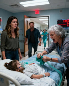 Emily se quedó paralizada, su mente en blanco, sus manos frías. Lily comenzó a asfixiarse violentamente sin la mascarilla, y los monitores estallaron en alarmas. Las enfermeras entraron corriendo, gritando órdenes, apartando a Margaret a la fuerza y volviendo a colocar la mascarilla.