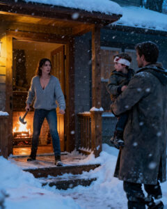 Mientras Robert corría para asegurar las ventanas, una sombra se movió afuera: una figura caminando con dificultad a través de la nieve hacia la cabaña. Morgan entrecerró los ojos, tratando de distinguir quién era, pero la tormenta oscurecía todo.